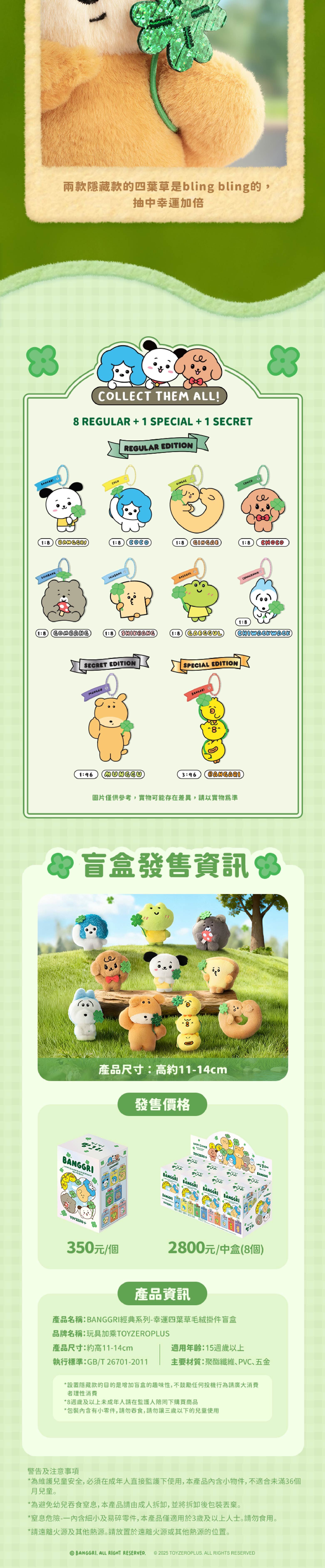 BANGGRI 經典系列 - 幸運四葉草毛絨掛件 (盲盒)